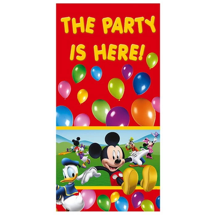 Tous vos invités savent à présent où trouver la fête et s’amuscr scr le thème des Princesses Disney ! Ce panneau de porte en plastique représente Raiponce, Belle et Cendrillon avec un message coloré,The party is here !.