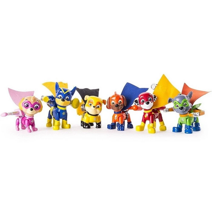 Retrouve tous les chiots héros du dessin animé Paw Patrol, la Pat’ patrouille, dans leur costume de super-héros avec des sacs à dos amovibles !