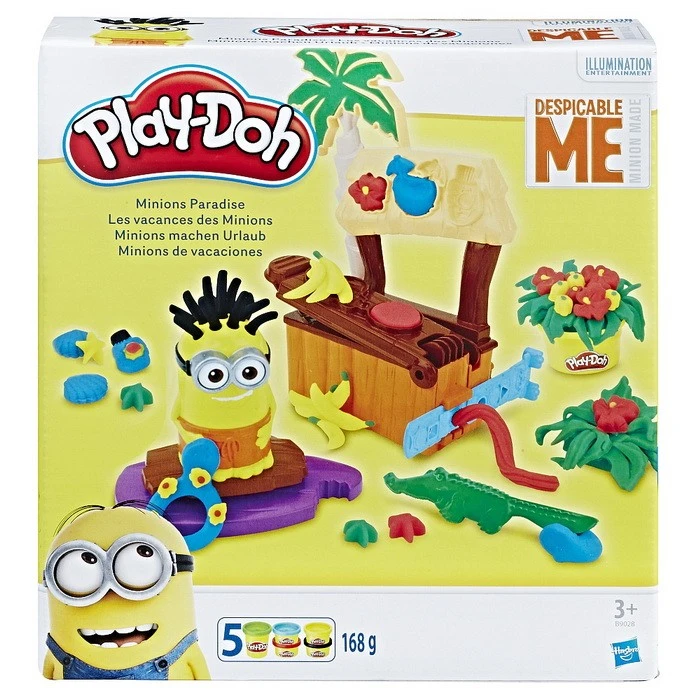 Imagine les vacances des Minions avec la pâte à modeler Play Doh ! Contient : 2 pots (1oz) de pâte : vert et gris, 2 pots (2oz) de pâte : bleu et jaune, les personnages Minions à customiser, des moules, un extruder et des accessoires.