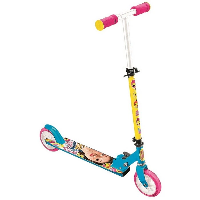 Cette très belle patinette pliable Soy Luna sera parfaite pour les enfants âgés de 7 ans et plus. Elle est équipée de roues en PVC 145 mm et d’un frein arrière. Dotée d’un plateau antidérapant imprimé aux couleurs de la série Soy Luna, elle garantit stabilité et confort pour les enfants et les ados.