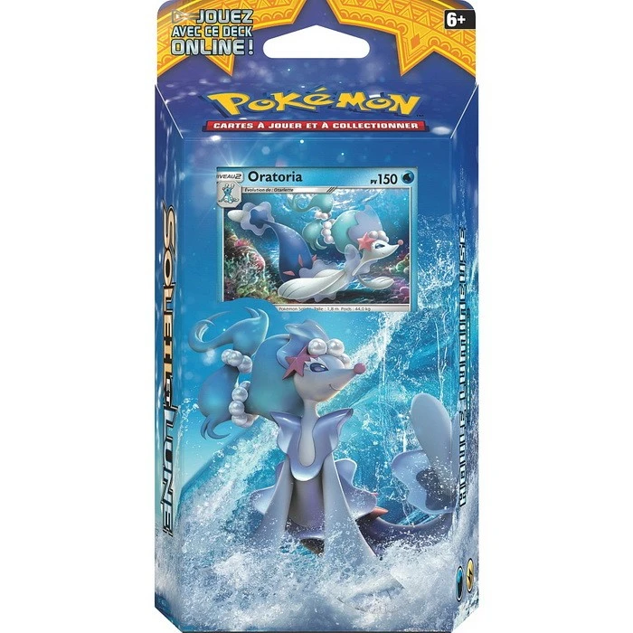Ce Starter Lune & Soleil comprend 60 cartes, 1 pièce métallisée, 1 livret de règles/liste de cartes, 1 tapis de jeu, des marqueurs de dégâts et une carte à code donnant accès à un deck pour jouer en ligne.