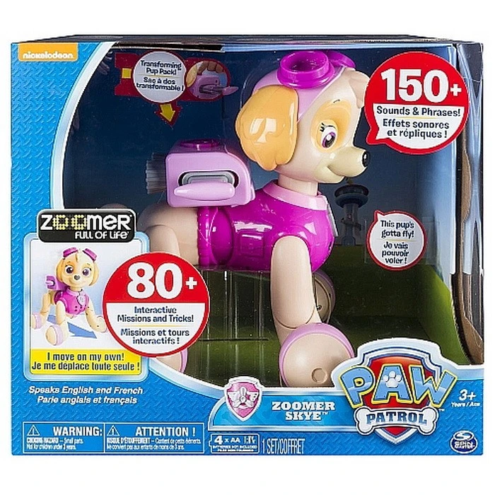 Directement inspirés du dessin animé Pat’Patrouille où un petit garçon de 10 ans, Ryder, se trouve à la tête d’une meute de 7 chiens, et avec qui il vit des aventures extraordinaires. Chacun des chiens possède un métier : pompier, policier ou encore ambulancier, les talents sont nombreux chez ces animaux. Les Zoomer Marshall ou Stella de Spin Master eux aussi sont intelligents, à l’image des héros du dessin animé. Dotés d’une technologie interactive ils se déplacent seuls à travers la maison et ils parlent. Lorsque vous touchez les jouets interactifs ou que vous effectuez des mouvements, les chiots répondent ! Pleins d’énergie, Marshall et Stella aboient, dansent, sautent en l’air Lorsque votre enfant appuie sur la tête de l’animal il profère des répliques du dessin animé.
